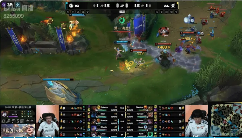 5分钟:锤石先手勾到璐璐配合队友拿下一血